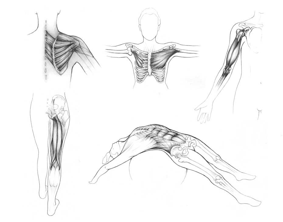 Here are some examples of illustrations developed for the book “A Guide to Stretching”.